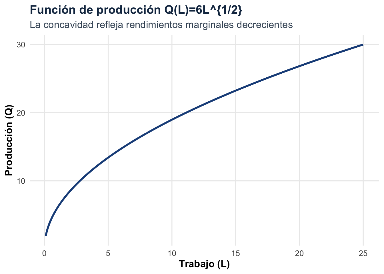 Con capital fijo, agregar trabajo suele aumentar producción cada vez menos. Eso es rendimientos marginales decrecientes: las primeras unidades de trabajo se combinan bien con el capital disponible; después aparece congestión, coordinación más difícil o saturación de maquinaria.